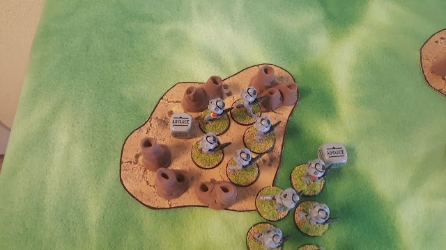 Once the dust settles after not one but two rounds of combat, one medic is down and the other breaks away from his five assailants and moves back towards his own line. Note that he didn't run away, just consolidated into a better position... because apparently he is distantly related to Chuck Norris.
